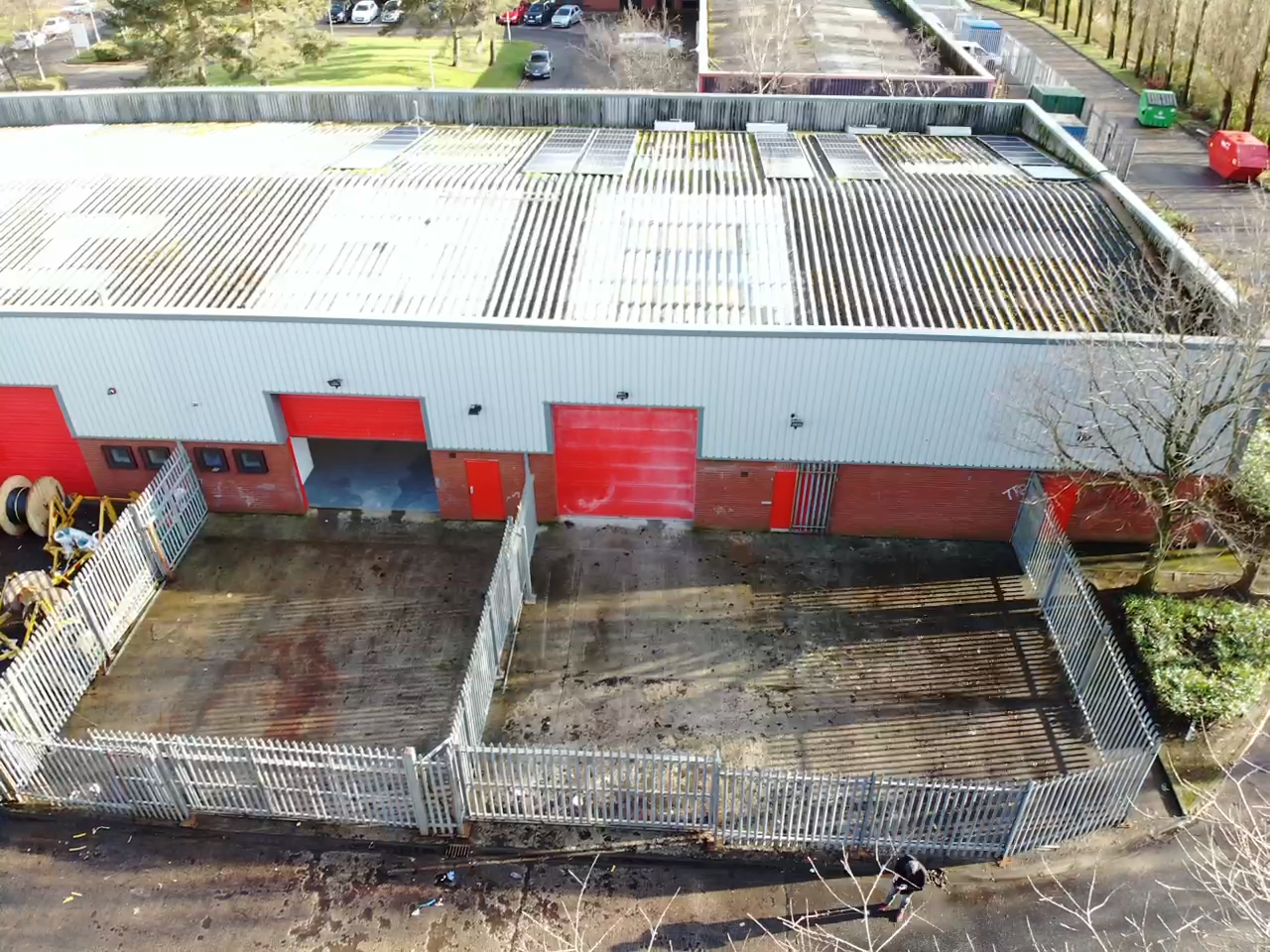 This light modern industrial unit benefits from dedicated front parking spaces (with electric car charging), pedestrian access to offices, and rear access to a spacious workshop area via secure gated yard and roller shutters.